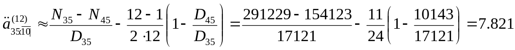 - стоимость на начальный момент времени t серии из nm выплат в сумме 1/m каждая, производимых через интервалы времени 1/m, начиная с момента t. Значения и вычисляются по формулам