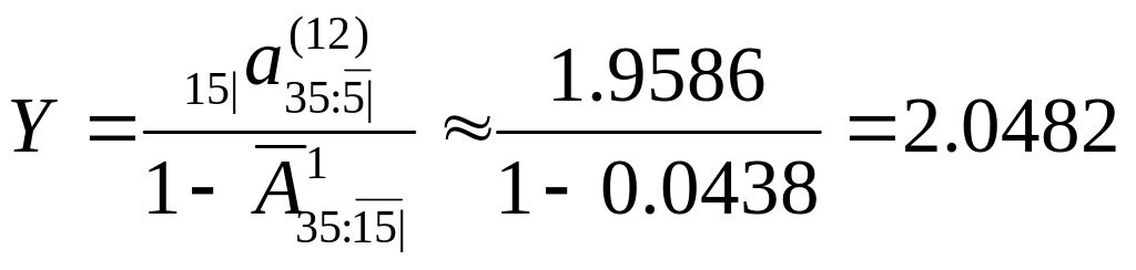 Во всех примерах, кроме примера 6, страховая сумма равна 1. Если по договору страхования предусмотрено увеличение страхового обеспечения в зависимости от времени, истекшего с момента заключения договора, то их величины составляют 1,2,3..... Формулы для расчета аннуитетов приведены в разделе 2.3.