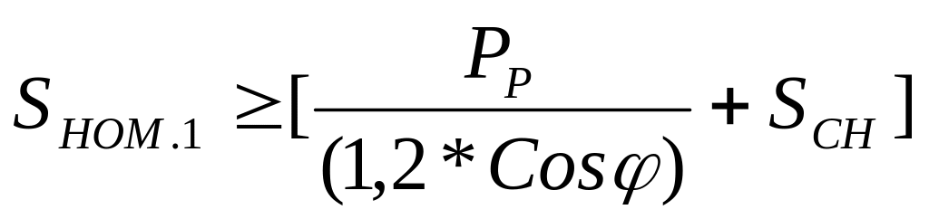 S СН = Σ S i + Σ РНОМ.ОСВ / 0,95, кВА (2.49.)