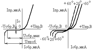 Свойства P-N- перехода существенно зависят от температуры окружающей среды (рис.,б). При недостаточном обеспечении теплоотвода от указанного перехода происходит его перегрев и повышение температуры вызывает увеличение тепловых колебаний электронов основного полупроводника, при этом некоторые из них приобретают энергию, достаточную для разрыва связей с атомами.