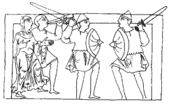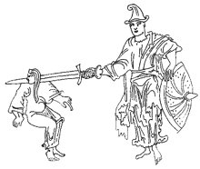 The hundred court would first decide whether the plaintiff had a case to bring and if it was worth the court's time to hear it. (Norsemen apparently had a reputation for going to court at the drop of a hat - further proof that Eirik the Red discovered America.) The court might decide that a case fell outside of its jurisdiction and would pass it up to the shire court. Also, certain types of crime might be dealt with with the king's reeve as plaintiff on the king's behalf. If the hundred court accepted the validity of the law-suit, a day would be appointed on which the defendant should appear. (If the defendant was not at court to hear the charge, then we must assume that someone would be delegated to go and tell him of it.) If the defendant did not turn up on the appointed day, the plaintiff had to repeat his law-suit, before witnesses, at the next hundred court and a new date would be set. This way, a defendant could avoid appearing before the court for some time, but eventually the court would decide that enough was enough and he would lose the suit by default. On the appointed day, assuming that the defendant appeared, the plaintiff would make a preliminary oath to prove the honesty of his motives. He would then repeat the charges before witnesses and the defendant.