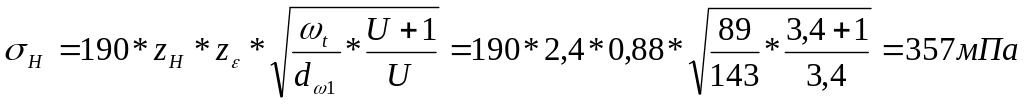 где zн – коэффициент, учитывающий форму сопряженных поверхностей зубьев в полосе зацепления, и он равен zн=2,4;