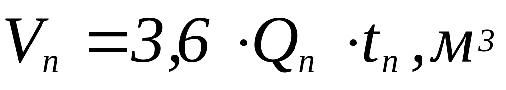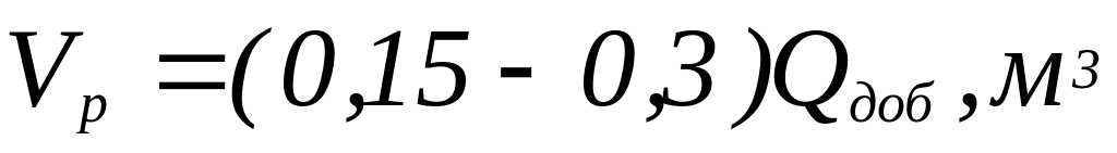 Vр – робочий або регулюючий об’єм резервуара за формулою