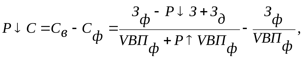 где Св – возможная себестоимость продукции; Сф – фактическая себестоимость продукции; Зф – фактические затраты на производство и реализацию продукции; Зд – дополнительные затраты для освоения резервов (Р↑VВП).