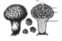 Представитель дождевик жемчужный – Lycoperdon perlatum. Рассмотреть строение плодового тела (базидиомы) и отметить: глеба, камеры, ножка – бесплодный столбик, экзоперидий, эндоперидий, перистом.