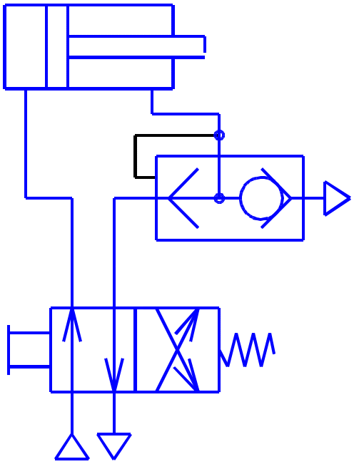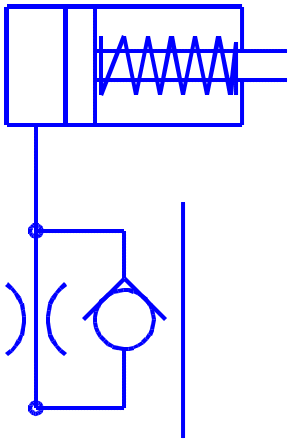 - •Дросель з зворотним клапаном встановлюють у вихідній пневмолінії. При виході повітря проходить через дросель. При здійснені зворотного ходу стиснуте повітря проходить через зворотний клапан.