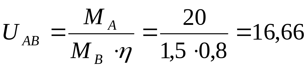 В некоторых передачах необходимо в первую очередь обеспечить требуемое изменение момента, при этом скорость ведомого звена не регламентируется. В таких случаях передаточное отношение определяют исходя из моментов на ведущем А и ведомом В звеньях зубчатого механизма и его предполагаемого КПД.