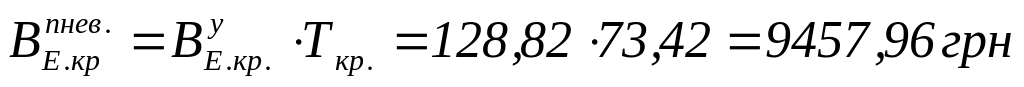 Ве.кр - вартість експлуатації крана на монтажі конструкцій визначається за формулою :