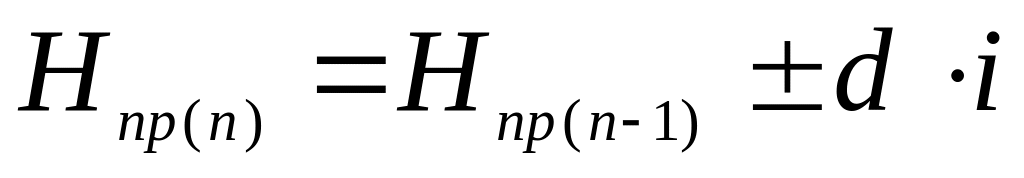где Нпр(n) и Нпр(n-1 )- последующие и предыдущие проектные отметки;