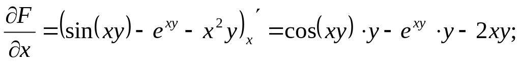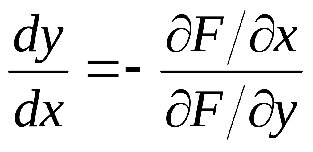 Частные производные неявной функции двух переменных , определяются следующим образом: