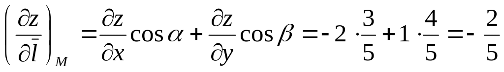 Используя формулу (5.2), получим производную функции z в направлении вектора :