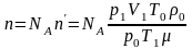 Дано: p1 = 770·133 Па, V1 = 240 м3, T1 = 280 К, p0 = 760·133 Па, T0 = 273 К, 0 = 1,29 кг/м3, = 29·10-3 кг/моль, NA = 6,02·1023 моль-1. |