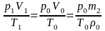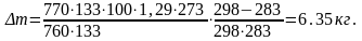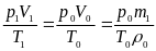 Дано: V1 = 100 м3, T1 = 273 + 10 = 283 К, T2 = 273 + 25 = 298 К, p1 = 770 мм.рт.ст. = = 770·133 Па, 0 = 1,29 кг/м3 p0 = 760·133 Па. |