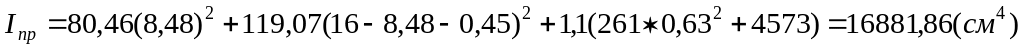 Приведенный момент инерции относительно нейтральной оси: