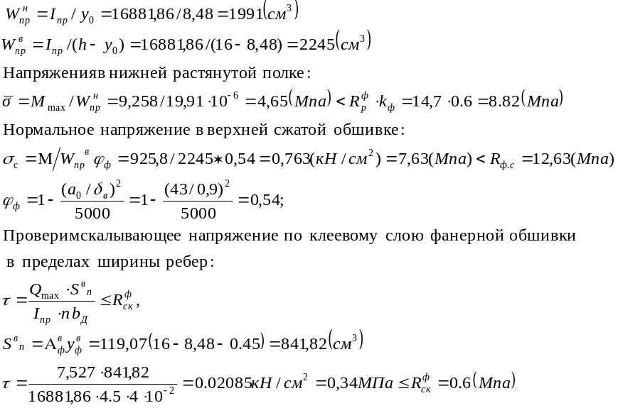 М = 3,06·4,92²/8=9,258 кН·м = 925,8 кНсм;