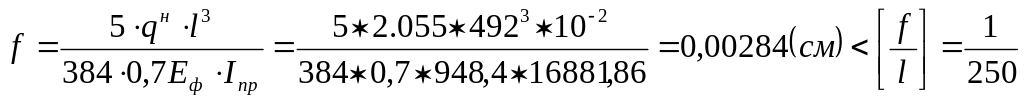 Проверяем деформативность панели. Относительный прогиб: