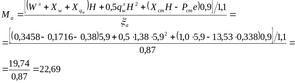 =[(0,3458–0,1716–0,38)5,9+0,51,38 ]0,9+1,05,9–13,530,338 = 21,85кНм
