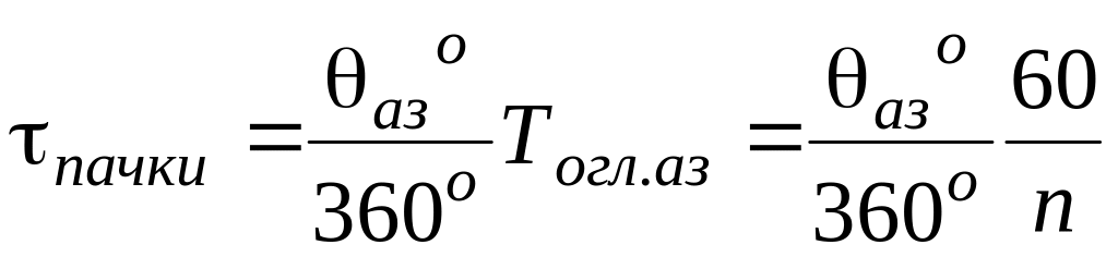 У системах точного вимірювання місцезнаходження цілі в режимі слідкування за кутовими координатами тривалістю пачки можна вважати інтервал часу між некорельованими відліками вимірюваних кутових координат. Цей інтервал приблизно збігається зі сталою часу інтегрувального кола підсистеми слідкування.