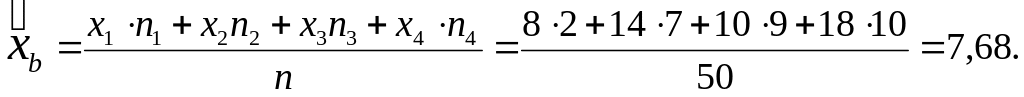 Выборочная средняя определяется как среднее арифметическое полученных по выборке значений: