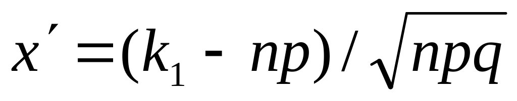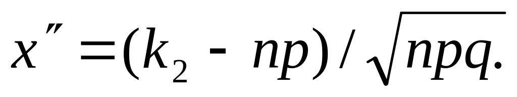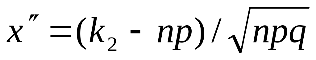 Р(k1 ;k2 ) = Ф( х") – Ф( х' ),