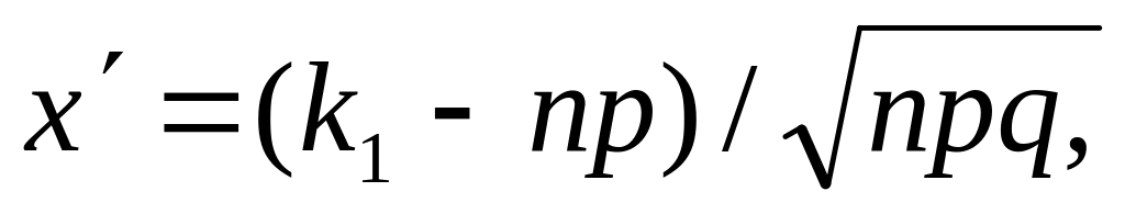8.2 Интегральная теорема Лапласа. Вероятность того, что в n независимых событиях, в каждом из которых вероятность появления события равна p(0<p<1), событие наступит не менее k1 раз и не более k2 раз, приближенно равна