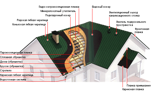 М’яка покрівля також відома як бітумна або гнучка черепиця – все це різні назви одного й того ж матеріалу, що застосовується для покриття дахів, одним з головних переваг якого є гнучкість. Ця властивість бітумної черепиці дозволяє зводити покрівлі різного рівня складності, втілюючи найбільш сміливі та неординарні архітектурні рішення з легкістю і витонченістю, не витрачаючи при цьому багато коштів і зусиль.