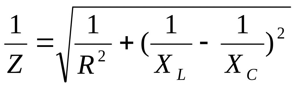 Полное сопротивление при параллельном соединении активного сопротивления, индуктивности и емкости (рис. 15б) определяется по формуле