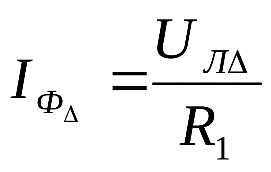 Ход решения: определяем фазное напряжение при соединении «звездой», а затем и линейное. По линейному напряжению определяем линейные токи при соединении «треугольником» нагрузок R2.