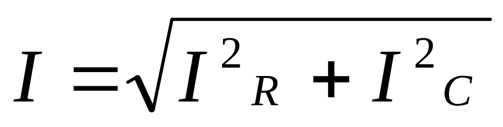 Вектор тока, протекающего по активному сопротивлению, совпадает с вектором напряжения по фазе, а вектор тока на емкости опережает вектор напряжение на 90º.