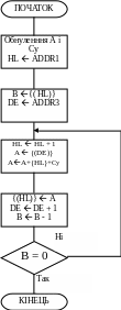Нехай довжина чисел знаходиться в комірці пам’яті за адресою ADDR1, а самі числа розташовуються починаючи з адрес ADDR2 та ADDR3 відповідно, таким чином, що спочатку йдуть молодші розряди. Програма розміщує результати в комірки, де зберігалось перше число.