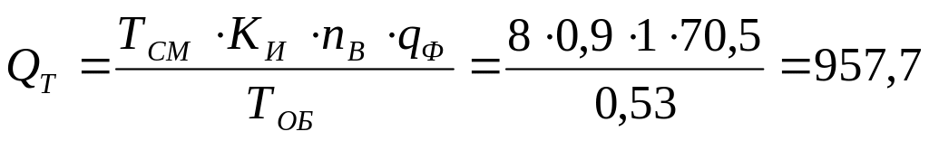 где Ки – коэффициент использования сменного времени, Ки=0,9;