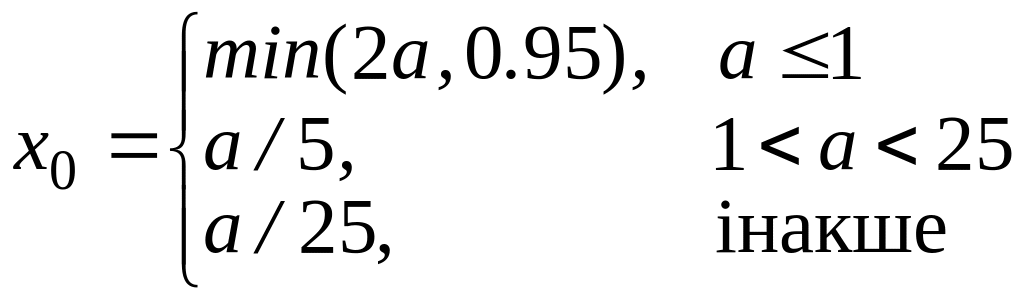 Дані додатні дійсні числа a, x, ε. У послідовності y1, y2, …, що утворена по закону