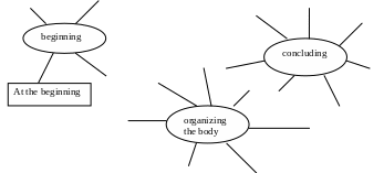 At the beginning; first; at the end ; in the first part; in the final part/ section; in the next part; in the main part; in the introduction; then; afterwards; at last; moreover; in (the) conclusion; in addition to that; next; finally; summing up his / her thoughts.
