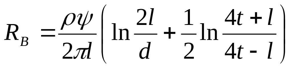 Тут RB – опір розтіканню струму для одного вертикального стрижневого заземлювача: