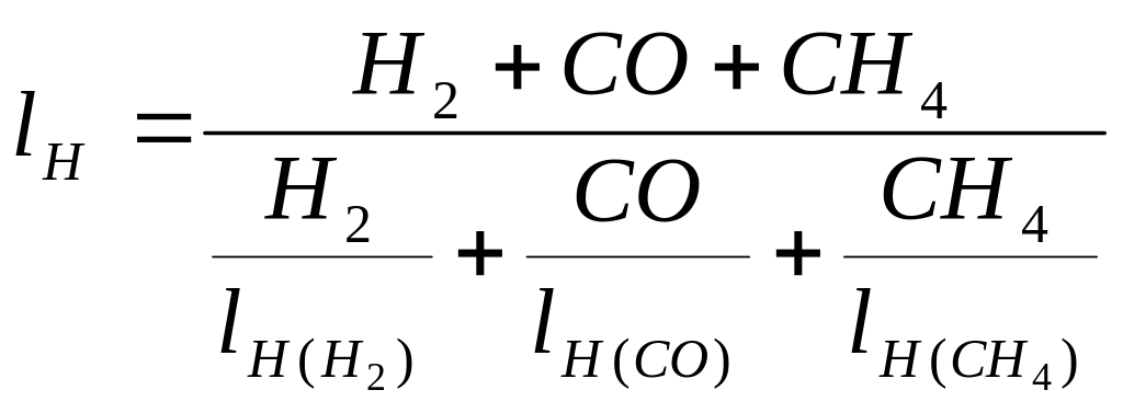 lH(Н2), lH(СО), lH(СН4) та lВ(Н2), lВ(СО) , lВ(СН4) – нижня та верхня межі спалахування окремих горючих компонентів газу в суміші з повітрям, %, які наведені в додатку 7.