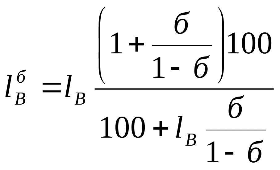 lHб, lBб – нижня та верхня межі сполоху газу заданого складу у суміші з повітрям, %.
