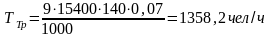 Ттн=0,5*(48,6+20,7+39,6)=54,45 чел/ч.