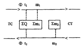 m1 и m2(V1 и V2) - массовый (объемный) расход теплоносителя в подающем и обратномтрубопроводах на выводах источника тепла, т/ч (м3/ч);