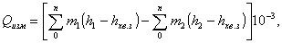 Здесь значения m2, h1 и h2 определяютсятеплосчетчиком, m1 - водосчетчиком, hхв принимается как среднее значение по результатам измерений на источникетепла.