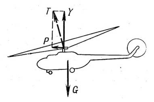 Несущий винт (НВ) служит для поддержания и перемещения вертолета в воздухе. При вращении в горизонтальной плоскости НВ создает тягу (Т), направленную вверх и т.о. выполняет роль создателя подъёмной силы (Y). Когда тяга НВ будет больше веса вертолета (G), вертолет без разбега оторвется от земли и начнет вертикальный набор высоты. При равенстве веса вертолета и тяги НВ вертолет будет неподвижно висеть в воздухе. Для вертикального снижения достаточно тягу НВ сделать несколько меньше веса вертолета. Сила (P) для поступательного движения вертолета обеспечивается наклоном плоскости вращения НВ при помощи системы управления винтом. Наклон плоскости вращения НВ вызывает соответствующий наклон полной аэродинамической силы, при этом ее вертикальная составляющая будет удерживать вертолет в воздухе, а горизонтальная — вызывать поступательное перемещение вертолета в соответствующем направлении.