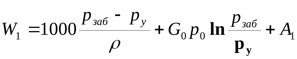 где W1 – энергия газожидкостной смеси ,расходуемая на подъем 1 т жидкости при изменении давления от рзаб до ру, Дж.
