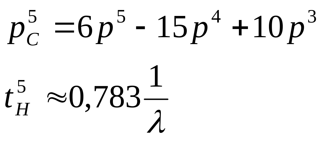 Хотя оба элемента системы подчиняются экспоненциальному распределению, но система в целом не подчинена экспоненциальному закону. Поэтому определим tHc по известному правилу