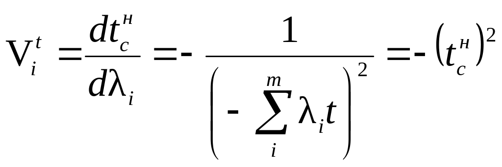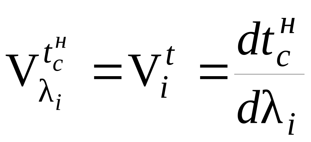Для нахождения чувствительностей продифференцируем Рс(t) и tсн по независимой переменной λi (или Рi) в произвольный фиксированный момент времени t0 и получим размерные функции чувствительности: