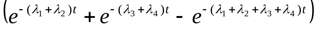 Рс(t)=1-(1-P1(t))(1-P2(t)(1-P3(t))= P1+P2-P1P2+P3-P1P3- P2P3+ P1P2P3