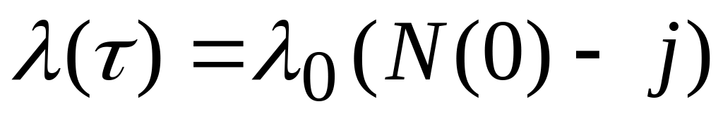 Понятно, что данная гипотеза аналогична первой модели поведения ошибки в сертифицированном ПО. Зависимость интенсивности отказов от τ и N описывается формулой: