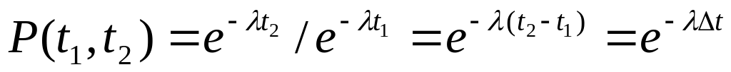 где P(t1,t2) – вероятность безотказной работы на t = t2-t1; e -t1, e -t2 - вероятности исправной работы в моменты t2 и t1.