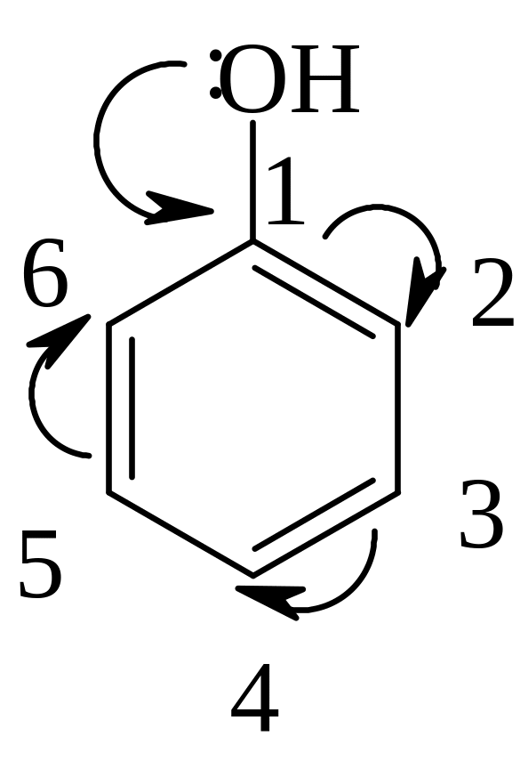 70. Як впливає гідроксильна група на перерозподіл електронної густини в молекулі фенолу (підвищує її чи понижує) і в яке положення спрямовує наступні замісники?
