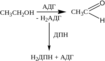 Метод биохимический (энзимный, ферментативный, метод АДГ) был разработан в 1951г. Бюхером и Родецки и применяется, в основном, в зарубежных лабораториях. Метод основан на реакции окисления этанола до ацетальдегида под действием фермента алкогольдегидрогеназы