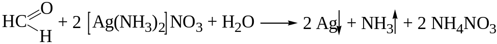 Формальдегид обладая восстановительными свойствами способен восстанавливать металлическое серебро из аммиачных растворов. При наличии формальдегида аммиачный раствор серебра нитрата образует серебряное «зеркало» или черный осадок: