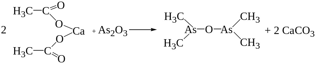 Ацетат кальция, образующийся при взаимодействии уксусной кислоты с солями кальция, при нагревании с сухим мышьяковистым ангидридом или солью, мышьяковистой кислоты дает окись какодила, имеющую неприятный запах.